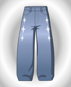 El bordado “Cosmic” en la pierna funciona como un sello de identidad: un recordatorio de que incluso desde lo terrenal proyectamos energía hacia dimensiones más grandes. El contraste entre el bordado y el denim lavado le da a la prenda una vibra única, elegante pero con espíritu explorador.
